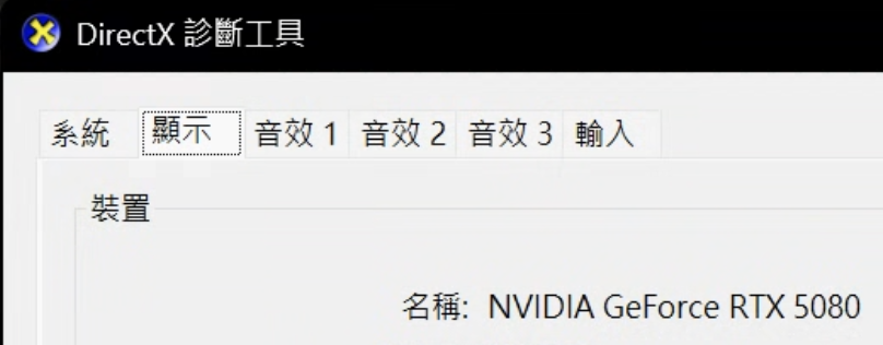 4.在"裝置"區域中,即可看見"名稱"顯示的顯卡型號